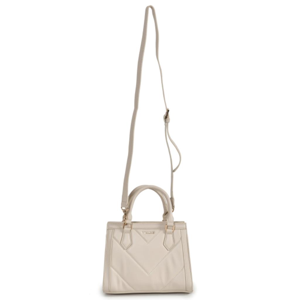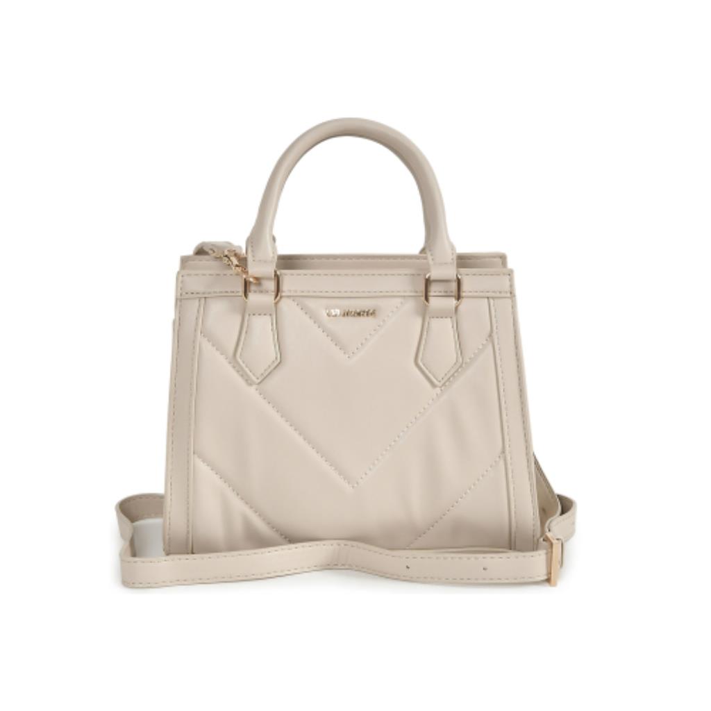Bolsa tote feita em PU com matelassê e detalhes de acabamentos estruturados. Possui alça de ombro estruturada e fixa por argolas de metal. Abertura principal com zíper de metal. Puxador personalizado. Peça forrada com bolsos internos, sendo um de zíper. Etiqueta patch na parte interna. Placa frontal Via Marte de metal dourado. Acompanha alça tiracolo ajustável e removível com metais personalizados.