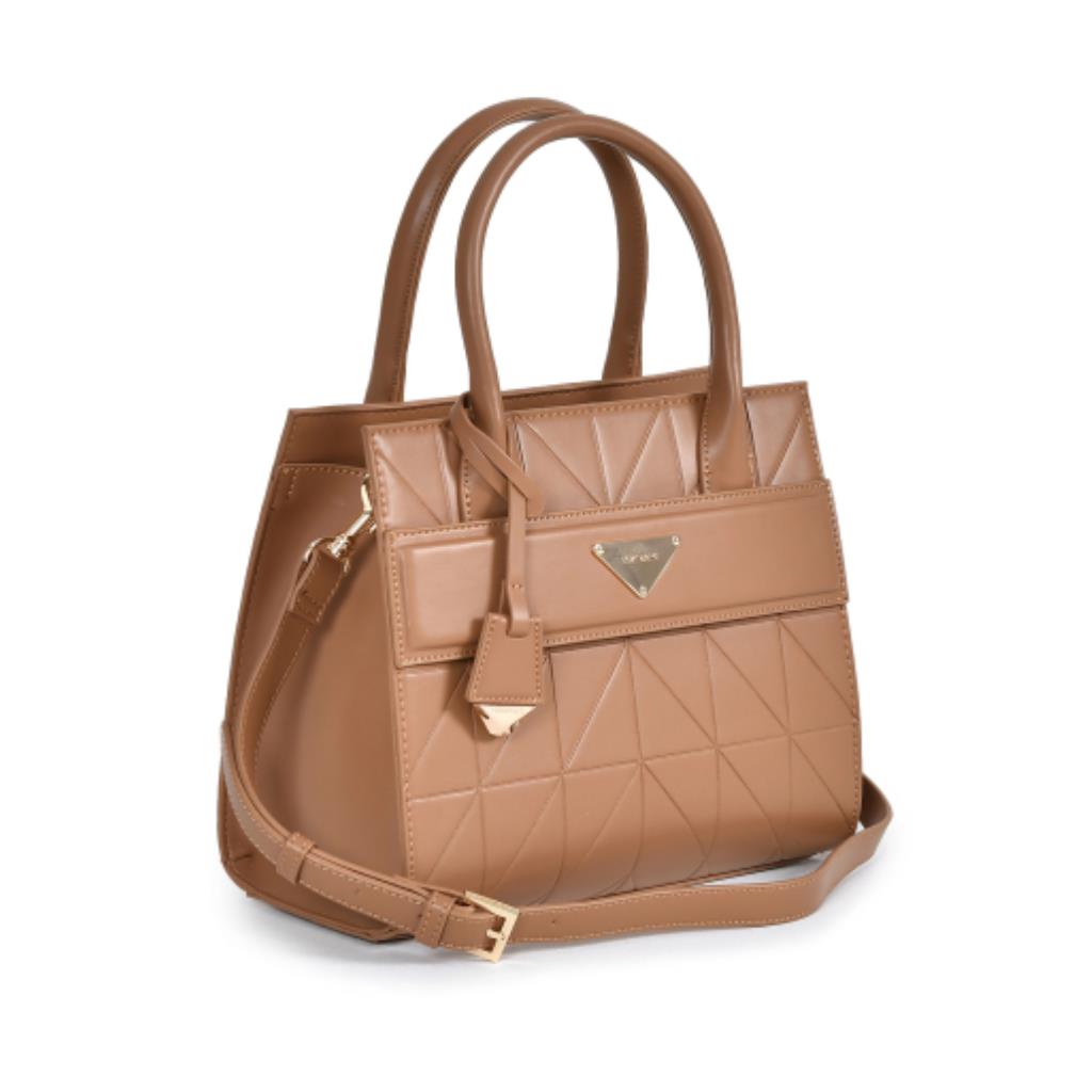 A Bolsa Tote Média Via Marte, confeccionada em PU com elegante matelassê geométrico, apresenta um formato estruturado que combina sofisticação e funcionalidade. Com alça de mão estruturada e faixa de PU destacada, traz o logo Via Marte em metal dourado aplicado, adicionando um toque de classe. Acompanha uma alça tiracolo fina, ajustável e removível, com fechos de metal dourado, permitindo versatilidade no uso. A abertura principal é prática, com zíper de metal e puxador exclusivo. O interior é forrado, contando com um bolso em zíper e um bolso simples, além de um chaveiro personalizado e metais exclusivos que ressaltam a atenção aos detalhes.