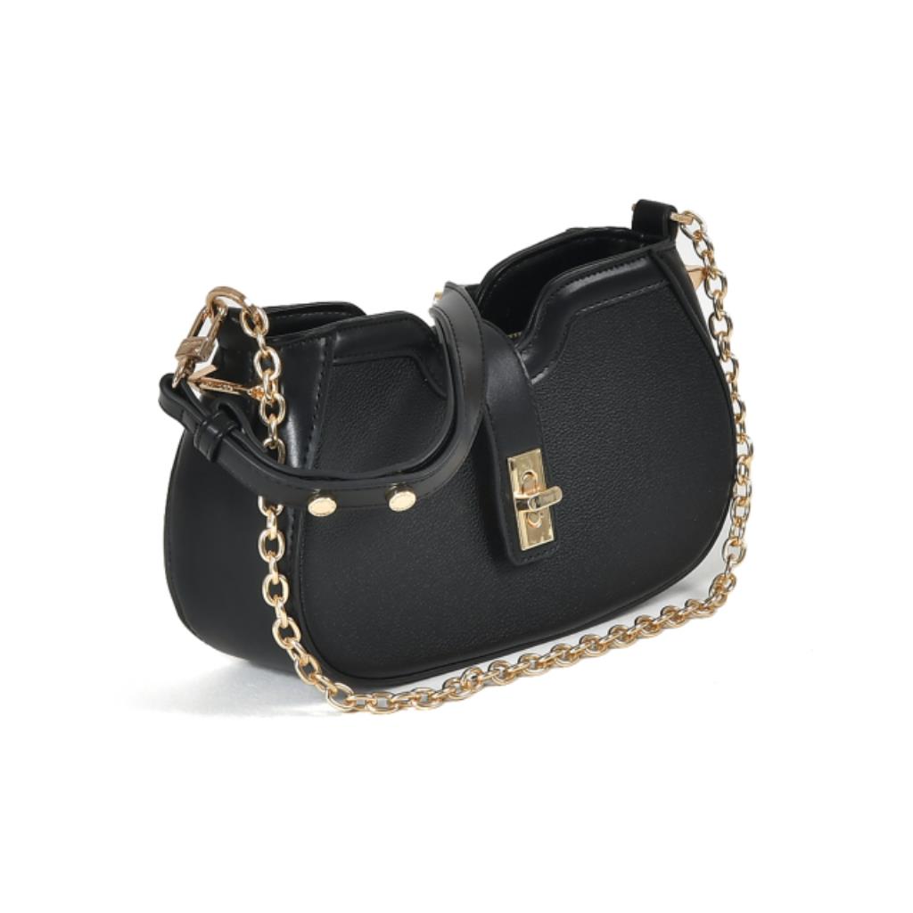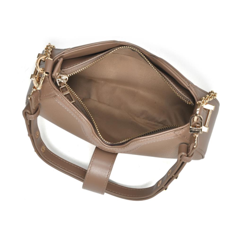 Shoulder bag em PU estruturado. Alça de ombro ajustável para ser usada como tiracolo. Acompanha alça extra de corrente. Abertura em fecho de metal com logo e zíper de metal. Peça forrada com bolsos interno de zíper. Detalhes de metais laterais com logo Via Marte.