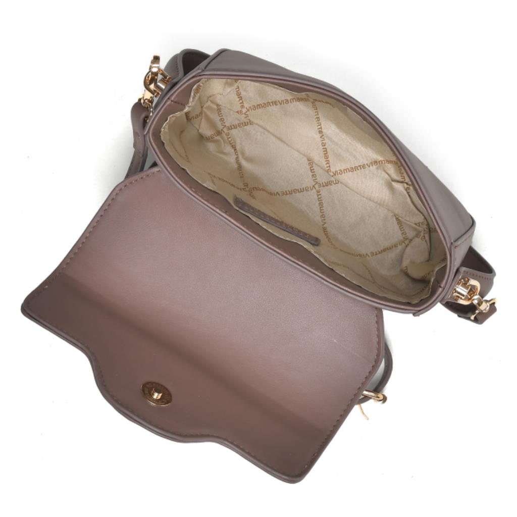 Handbag mini em PU com detalhe arrendodado na lapela e Placa frontal metalica VM circular. Design com bordas arredondadas e alça de mão fixa, acompanha alça longa de PU com regulagem de altura. Fechamento com tampa e botão magnético. Perfeita para adicionar o charme essencial em qualquer look.
