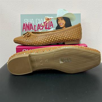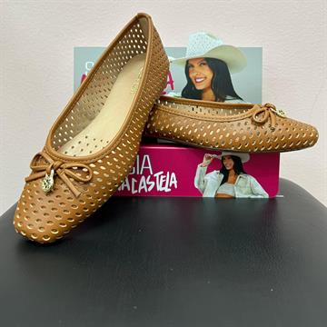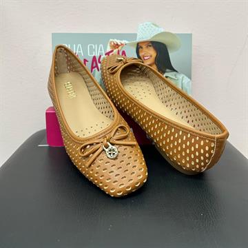 Sapatilha bico arredondado, vazada no cabedal.