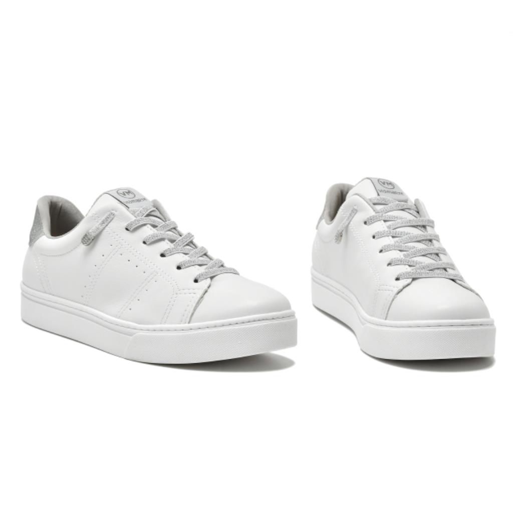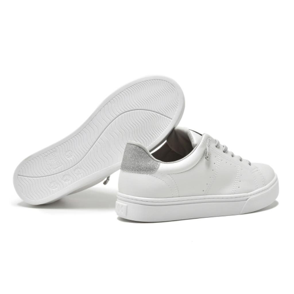 Sintetico, parte superior em napa/mini glitter. Na cor branco/prata. Forro tecido poliester.